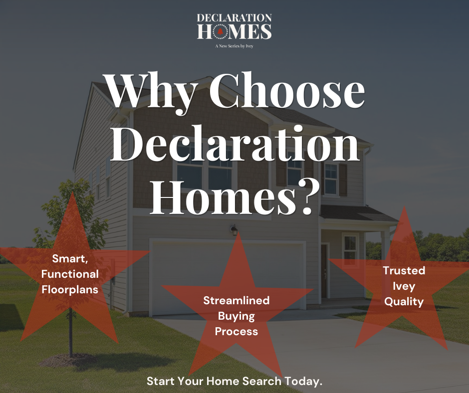 Declaration Homes by Ivey Homes. Built with intention, designed for real life, and created to make homeownership more accessible than ever.